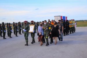 จากนั้น เวลา 16.00 น.ที่ ท่าอากาศยานนราธิวาส (สนามบินบ้านทอน) ตำบลโคกเคียน อำเภอเมืองนราธิวาส จังหวัดนราธิวาส รองแม่ทัพภาคที่ 4 ได้เป็นประธานพิธีส่งศพของ ร้อยโท กฤษณะ เพ็ชรจำรัส เพื่อกลับไปบำเพ็ญกุศลยังภูมิลำเนาจังหวัดพัทลุง โดยจะมีพิธีรับศพ ณ มณฑลทหารบกที่ 42 ค่ายเสนาณรงค์ ตำบลคอหงส์ อำเภอหาดใหญ่ จังหวัดสงขลา ทั้งนี้ครอบครัวได้กำหนดให้มีพิธีสวดพระอภิธรรม ณ วัดควนแสวง ตำบลโคกทราย อำเภอป่าบอน จังหวัดพัทลุง โดยได้รับพระมหากรุณาธิคุณ จากพระบาทสมเด็จพระเจ้าอยู่หัวให้มีพิธีพระราชทานเพลิงศพเป็นกรณีพิเศษในวันพฤหัสบดี ที่ 7 ตุลาคม 2564 ต่อไป