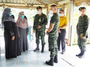 ที่ ศูนย์เรียนรู้เศรษฐกิจพอเพียงบ้านห้วยน้ำเย็น หมู่ที่ 2 ตำบลบ่อทอง อำเภอหนองจิก จังหวัดปัตตานี พันเอก กฤศณัฏฐ์ จันทร รองผู้บังคับหน่วยเฉพาะกิจปัตตานี ร่วมกิจกรรมพบปะองค์กรภาคประชาชนเพื่อสันติและเศรษฐกิจพอเพียงจังหวัดปัตตานี (มวลชนเสื้อเขียว) ประจำเดือน ตุลาคม 2564 เพื่อพูดคุยแนวทางในการปฏิบัติงาน สนับสนุนบูรณาการการทำงานร่วมกันระหว่างหน่วยทหารและองค์กรภาคประชาชนเพื่อสันติฯ