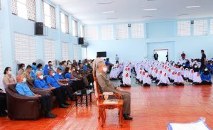 จากนั้นองคมนตรีได้พบปะครู นักเรียน บุคลากรทางการศึกษา ชมการแสดงชุด วาบูแล จากตัวแทนนักเรียนโรงเรียนราชประชานุเคราะห์ 41 พร้อมมอบกระเป๋าและอุปกรณ์กีฬาพระราชทาน โดยมีผู้อำนวยการโรงเรียนราชประชานุเคราะห์ 41เป็นผู้รับมอบ ในโอกาสนี้ องคมนตรีได้กล่าวพบปะให้โอวาทแก่คณะครูนักเรียน โดยห่วงใยเรื่องสุขภาพอนามัยของนักเรียน พร้อมกล่าวชื่นชมเรื่องการส่งเสริมการเรียนการสอนของโรงเรียนที่เน้นให้นักเรียนได้เรียนรู้ทั้งภาควิชาการ และภาควิชาชีพโดยได้เยี่ยมชมนิทรรศการส่งเสริมอาชีพของนักเรียนในครั้งนี้ด้วย