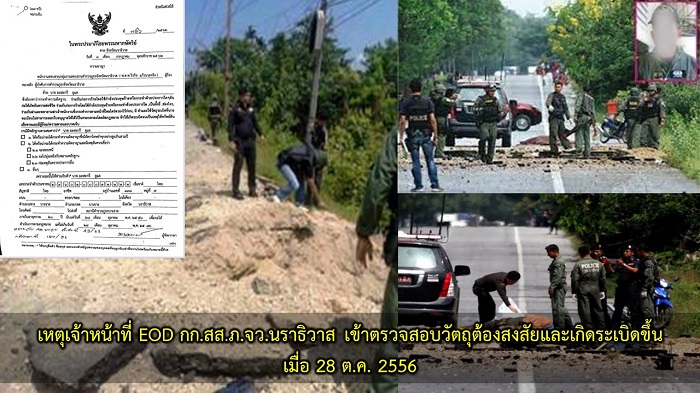 เหตุวางระเบิดเจ้าหน้าที่เก็บกู้วัตถุระเบิดชุดปฏิบัติการจังหวัดนราธิวาส ขณะเข้าทำการตรวจสอบวัตถุต้องสงสัยและเกิดระเบิดขึ้นในพื้นที่ตำบลเกาะยอมาตี อำเภอบาเจาะ จังหวัดนราธิวาส เมื่อวันที่ 28 ตุลาคม 2556 โดยจากการสอบสวนทราบว่านายมะสะกรี อูแล หน้าที่ขุดหลุมเพื่อวางระเบิด โดยต่อมาศาลจังหวัดนราธิวาสออกหมายจับที่ จ. 326 / 2562
