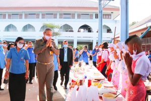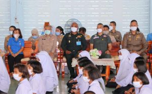 โอกาสนี้องคมนตรีได้ชมการแสดงของนักเรียนโรงเรียนราชประชานุเคราะห์ 43 พร้อมกล่าวให้โอวาทแก่ นักเรียน โดยได้กล่าวชื่นชมชุดการแสดงของนักเรียนที่สื่อให้เห็นถึงการอยู่ร่วมกันทั้งสองศาสนา รวมถึงเป็นการอนุรักษ์ประเพณีวัฒนธรรมในพื้นที่ภาคใต้ ให้เยาวชนรุ่นหลังร่วมกันสืบสานสืบไป ก่อนจะมอบกระเป๋าและอุปกรณ์กีฬาพระราชทาน โดยมีผู้อำนวยการโรงเรียนราชประชานุเคราะห์ 43 เป็นผู้แทนในการรับมอบ พร้อมกันนี้องคมนตรีได้เยี่ยมชมนิทรรศการการเรียนรู้ด้านวิชาการู้และฐานการเรียนรู้ด้านทักษะอาชีพของนักเรียนอีกด้วย