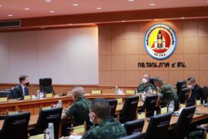 ที่ ห้องประชุม 1 กองอำนวยการรักษาความมั่นคงภายในภาค 4 ส่วนหน้า (กอ.รมน.ภาค 4 สน.) ตำบลเขาตูม อำเภอยะรัง จังหวัดปัตตานี พลตรี วัฒนา กรมขันธ์ เลขาธิการ กอ.รมน.ภาค 4 สน. ให้การต้อนรับ นาย จอห์น แพทริค นอร์ตัน คณะกรรมการกาชาดระหว่างประเทศ (ICRC : International Committee of the Red Cross) และคณะ ในโอกาสเข้าร่วมประชุม ปรึกษา/หารือ เพื่อนำเสนอภาพรวมกิจกรรมการทำงานของ ICRC ในช่วงเวลาที่เหลือในปีปัจจุบันและพูดคุยเกี่ยวกับแผนกิจกรรมการทำงานของปี 2565 ที่จะได้มีการประสานความร่วมมือกันกับ กอ.รมน.ภาค 4 สน. เพื่อให้พี่น้องประชาชนในพื้นที่จังหวัดชายแดนภาคใต้ได้รับผลประโยชน์สูงสุด รวมทั้งแนะนำผู้ที่จะมารับตำแหน่งหัวหน้าคณะทำงานภาคใต้ท่านใหม่ คือ นาย ฌาคส์ โกลด ปอล นิกิตัส กีย์ ดูโครส์ เดอ ลาฟาร์จ เดอ โรมฟอร์