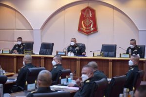 หลังจากนั้นก่อนวาระการประชุม หน่วยขึ้นตรง กองทัพภาคที่ 4 แม่ทัพภาคที่ 4 ได้กรุณามอบโล่และเงินรางวัลให้แก่หน่วยทหาร ที่ได้รับผลการประเมินการประกวดค่ายทหารและกองรักษาการณ์ ระดับ กรม กองพัน และกองร้อยอิสระ ที่มีผลการประเมินอยู่ในเกณฑ์ ดีมาก ดี และชมเชย จำนวน 13 ค่ายทหาร และถือโอกาสนี้ ให้ฝ่ายเสนาธิการใหม่ที่สำเร็จการศึกษาหลักสูตรหลักประจำ ที่บรรจุรับราชการในกองทัพภาคที่ 4 เข้ารายงานตัว ก่อนให้โอวาทและแนวทางการทำงานที่จะช่วยกันปฏิบัติภารกิจด้วยความมุ่งมั่น ตั้งใจ เสียสละ ด้วยอุดมการณ์และความรักใน ชาติ ศาสนา พระมหากษัตริย์ ยึดถือหลักการเป็นคนดีมาใช้ทำงานในทุกภารกิจ เพื่อความเจริญก้าวหน้าในประเทศ และเป็นแบบอย่างที่ดีของผู้ใต้บังคับบัญชาต่อ