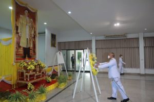 วันนี้ 13 ตุลาคม 2564 พลโท เกรียงไกร ศรีรักษ์ แม่ทัพภาคที่ 4 เป็นประธานในพิธีทำบุญตักบาตรข้าวสาร อาหารแห้งแก่พระภิกษุสงฆ์ เพื่อถวายเป็นพระราชกุศล เนื่องในวันคล้ายวันสวรรคตพระบาทสมเด็จพระบรมชนกาธิเบศร มหาภูมิพลอดุลยเดชมหาราช บรมนาถบพิตร ก่อนนำข้าราชการทหารวางพวงมาลา และกล่าวน้อมรำลึกในพระมหากรุณาธิคุณ เบื้องหน้าพระบรมฉายาลักษณ์ พระบาทสมเด็จพระบรมชนกาธิเบศร มหาภูมิพลอดุลยเดชมหาราช บรมนาถบพิตร ซึ่งทุกภาคส่วนได้ร่วมใจกันแสดงออกถึงความจงรักภักดี และน้อมรำลึกถึงพระมหากรุณาธิคุณของพระองค์ท่าน ที่ได้ทรงบำเพ็ญพระราชกรณียกิจเพื่อบำบัดทุกข์บำรุงสุขแก่ปวงชนชาวไทยนานับประการตราบจนกระทั่งเสด็จสวรรคต ณ สโมสรวีรไทย ค่ายวชิราวุธ อ.เมือง จ.นครศรีธรรมราช โดยมีข้าราชการ หน่วยทหารภายในค่ายวชิราวุธ เข้าร่วมพิธีอย่างพร้อมเพรียง