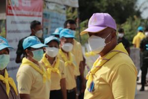 หลังจากนั้น พลโท เกรียงไกร ศรีรักษ์ แม่ทัพภาคที่ 4 / ผู้อำนวยการศูนย์อำนวยการจิตอาสาพระราชทานภาค 4 ลงพื้นที่มอบเจลแอลกอฮอพระราชทาน และมอบถุงยังชีพ ให้แก่พี่น้องประชาชนที่ได้รับผลกระทบจากสถานการณ์ covid-19 ในพื้นที่ชุมชนบ้านหลังบึง ตำบลปากพูน อำเภอเมือง จังหวัดนครศรีธรรมราช โดยในพื้นที่ชุมชนดังกล่าว เป็นชุมชนรอบค่ายทหาร พบผู้ติดเชื้อโควิด-19 และมีผู้สัมผัสเสี่ยงสูงจำนวนมาก การลงพื้นที่ช่วยเหลือจากทางหน่วยงานทหารในครั้งนี้ ได้สร้างความดีใจให้กับชาวบ้านในชุมชนเป็นอย่างยิ่ง ทั้งนี้ เป็นไปตามนโยบายของผู้บัญชาการทหารบก ที่สั่งการให้หน่วยทหารในทุกพื้นที่ ดูแลพี่น้องประชาชนอย่างดีที่สุด เพื่อก้าวผ่านวิกฤติโควิด-19 ในครั้งนี้ไปด้วยกัน