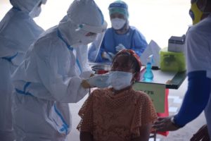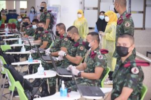 วันนี้ 15 ตุลาคม 2564 พลโทเกรียงไกร ศรีรักษ์ แม่ทัพภาคที่ 4 /ผู้อำนวยการรักษาความมั่นคงภายในภาค 4 ร่วมคณะติดตาม นายอนุทิน ชาญวีรกูล รองนายกรัฐมนตรีและรัฐมนตรีว่าการกระทรวงสาธารณสุข เดินทางตรวจเยี่ยมการปฏิบัติงานแก้ไขสถานการณ์การแพร่ระบาดของเชื้อไวรัส covid-19 ของ 4 จังหวัดชายแดนภาคใต้ โดยได้เดินทางมายัง ฉีดวัคซีนป้องกันไวรัส covid 19 ที่ตึก 58 อาคารเรียนรวมมหาวิทยาลัยสงขลานครินทร์วิทยาเขตปัตตานี อำเภอเมือง จังหวัดปัตตานี พร้อมนำทีมจากกระทรวงสาธารณะสุขสนับสนุนครุภัณฑ์ทางการแพทย์ให้แก่หน่วยบริการช่วยเหลือดูแลผู้ป่วย covid 19 ในเขตบริการพื้นที่ เพื่อแก้ไขสถานการณ์การแพร่ระบาดของเชื้อไวรัส covid-19 อย่างมีประสิทธิภาพ ก่อนลงพื้นที่พบปะบุคลากรสาธารณสุข และอสม. ยังจุดท่าเทียบเรือปัตตานี โดยมี นายนิพันธ์ บุญหลวง ผู้ว่าราชการจังหวัดปัตตานี ข้าราชการ เจ้าหน้าที่ สังกัดกระทรวงสาธารณสุข ร่วมให้การต้อนรับและนำเสนอผลการดำเนินการเฝ้าระวัง ป้องกันโรคโควิด-19 ของผู้ประกอบการแพปลา และแรงงานในพื้นที่