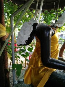 จากกรณี ที่มีคนร้ายทุบทำลายเศียรพระพุทธรูป “พระเจ้าองค์ดำ” ซึ่งประดิษฐานอยู่บริเวณต้นโพธิ์ภายในวัดวิมลวัฒนาราม (วัดหัวเขา) ถนนกลาพอ ตำบลตะลุบัน จนทำให้เศียรพระแตกหลุดเสียหาย กระถางธูปและเชิงเทียนที่วางอยู่กระจัดกระจายไปทั่วบริเวณ เหตุเกิดเมื่อวันที่ 27 กรกฎาคม 2563 ที่ผ่านมานั้น โดยเจ้าหน้าที่ได้ตรวจยึดวัตถุพยานในที่เกิดเหตุ ซึ่งประกอบด้วย ค้อน 1 อัน ขวาน 1 ด้าม มีดด้ามยาว 1 เล่ม และเสื้อยืดแขนยาวสีขาวจำนวน 1 ตัว ประกอบกับ ภายหลังเจ้าหน้าที่ตำรวจได้ตรวจสอบกล้องวงจรปิด พบบุคคลต้องสงสัย ทราบชื่อ คือ นายเกรียงศักดิ์ เทพราชา ซึ่งเป็นเด็กวัด และอาศัยอยู่ในวัดดังกล่าว ได้ออกจากวัดในช่วงเวลาใกล้เคียงกัน จึงได้เชิญตัวนายเกรียงศักดิ์ ฯ มาสอบปากคำ โดยได้ให้การปฏิเสธว่าไม่ได้เป็นผู้ก่อเหตุทุบทำลายเศียรพระพุทธรูปภายในวัดหัวเขาและแจ้งว่าในช่วงเวลาดังกล่าวได้ออกจากวัดไปทำธุระ หลังจากนั้นได้ให้เพื่อนมาส่งหน้าประตูวัดหัวเขาและกลับเข้านอน เจ้าหน้าที่จึงได้ปล่อยตัวไป