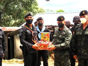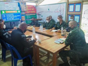 ทั้งนี้ พลตรี เฉลิมพร ขำเขียว ผู้บังคับหน่วยเฉพาะกิจนราธิวาส ได้พบปะให้โอวาทมอบแนวทางการปฏิบัติให้กับกำลังพล พร้อมทั้งเน้นย้ำนโยบาย และข้อสั่งการของ พลโท เกรียงไกร ศรีรักษ์ แม่ทัพภาคที่ 4 /ผู้อำนวยการรักษาความมั่นคงภายในภาค 4 แผนเสริมสร้างสันติสุขจังหวัดชายแดนภาคใต้ ปี 2565 แนวทางการใช้กำลังของ ชุดปฏิบัติการพิทักษ์พื้นที่ (ชป.พิทักษ์พื้นที่ ) ชุดปฏิบัติการกิจการพลเรือน (ชป.กร.) การปรับปรุงฐานปฏิบัติการ และทำสัญญานเตือนภัยแสวงเครื่องของทุกฐาน การดูแลรักษาความปลอดภัยให้กับพี่น้องไทยพุทธ จัดชุดปฏิบัติการร่วมทุกข์ร่วมสุข, การควบคุมพื้นที่ป่าภูเขา และการปฏิบัติงานเชิงรับให้สอดคล้องกับการขับเคลื่อนการแก้ปัญหายาเสพติดในพื้นที่โดยบูรณาการ การทํางานกับศูนย์ปฏิบัติการอําเภอ รวมทั้งการกำกับดูแลในความเป็นอยู่ การกินการนอน สวัสดิการของเจ้าหน้าที่ กำลังพลให้ดี และทุกนายต้องมีระเบียบมีวินัย การไม่ปิดบังความจริงในการรายงาน พร้อมทั้งให้ทุกส่วนเฝ้าติดตามสถานการณ์ของโรคโควิด-19 อย่างต่อเนื่อง และขอให้กําลังพลทุกนาย มีความตั้งใจในการปฏิบัติหน้าที่ ตามที่ได้รับมอบหมายอย่างเต็มความสามารถ เพื่อสามารถเป็นที่พึ่งของประชาชนได้ในทุกโอกาส ตลอดจนได้มอบสิ่งของบริโภค เพื่อเป็นขวัญและกำลังใจให้กับกำลังพลที่ปฏิบัติหน้าที่ต่อไป