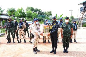 ทั้งนี้ ผู้บังคับหน่วยเฉพาะกิจกรมทหารพรานที่ 45 ได้เน้นย้ำเกี่ยวกับมาตรการในการป้องกันการแพร่ระบาดของเชื้อไวรัส COVID-19 ในระหว่างปฏิบัติหน้าที่ และให้มีความตื่นตัวอยู่ตลอดเวลา ไม่ประมาทต่อสถานการณ์ในพื้นที่อย่างเด็ดขาด พร้อมมอบสิ่งของบริโภค เพื่อเป็นขวัญกำลังใจแก่ กำลังพลในการปฏิบัติหน้าที่ต่อไป