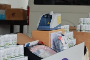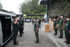 วันนี้ (21 ตุลาคม 2564) เวลา 11.00 น. ที่ ศูนย์อำนวยการแพทย์จังหวัดชายแดนภาคใต้ ค่ายสิรินธร อำเภอยะรัง จังหวัดปัตตานี พลโท เกรียงไกร ศรีรักษ์ แม่ทัพภาคที่ 4/ ผู้อำนวยการรักษาความมั่นคงภายในภาค 4 มอบอุปกรณ์ และเวชภัณฑ์ทางการแพทย์ ให้แก่ ศูนย์อำนวยการแพทย์จังหวัดชายแดนภาคใต้ ประกอบด้วย เครื่องให้อากาศผสมออกซิเจนอัตราการไหลสูง จำนวน 2 เครื่อง ยาฟ้าทะลายโจร จำนวน 6,000 กระปุก เพื่อสนับสนุนการรักษาพยาบาล แก่ผู้ติดเชื้อไวรัส covid-19 ในพื้นที่จังหวัดชายแดนภาคใต้ ที่ยังคงมีการระบาดอย่างต่อเนื่อง โดยมี พลตรี โชคชัย ขวัญพิชิต ผู้อำนวยการศูนย์อำนวยการแพทย์จังหวัดชายแดนภาคใต้ เป็นผู้รับมอบ
