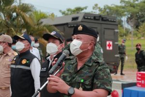 ต่อมา แม่ทัพภาคที่ 4 ได้เดินทางไปยังโรงพยาบาลสนามค่ายลพบุรีราเมศวร์ กรมสนับสนุนกองพลทหารราบที่ 15 เพื่อให้กำลังใจผู้ป่วยที่รักษาตัวภายในโรงพยาบาลสนามแห่งนี้ ซึ่งอาคารดังกล่าวเป็นหอผู้ป่วยหญิง และมีเด็กเข้าทำการรักษาตัวอยู่กว่า 600 ราย โดยได้นำอาหาร ขนม ของว่าง เครื่องดื่ม พร้อมอุปกรณ์ทางการแพทย์ มอบให้แก่โรงพยาบาลสนาม ด้วยความห่วงใยที่มีต่อผู้ป่วย ตลอดจนบุคลากรทางการแพทย์ ก่อนที่ผู้ป่วยเหล่านี้จะได้กลับไปใช้ชีวิตตามปกติพร้อมเป็นกระบอกเสียงให้แก่ชุมชนและหมู่บ้านใช้ชีวิตแบบ New Normal ต่อไป