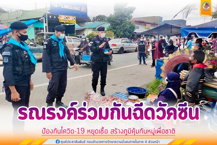 หน่วยเฉพาะกิจกรมทหารพรานที่ 44 จัดกำลังพลชุดปฏิบัติการกิจการพลเรือนของหน่วย ร่วมกับ หัวหน้าส่วนราชการ ผู้นำท้องที่ ผู้นำท้องถิ่น บัณฑิตอาสา ลงพื้นที่บริเวณตลาดนัด บ้านนัดฆอมิส หมู่ที่ 5 ตำบลน้ำดำ อำเภอทุ่งยางแดง จังหวัดปัตตานี เพื่อทำการประชาสัมพันธ์ร่วมรณรงค์การฉีดวัคซีนโควิด-19 และการป้องกัน ตามนโยบาย ของ ศกบ. / คำสั่งปัตตานี โดยมี นายเอกณัฏฐ์ สังขพันธ์ นายอำเภอทุ่งยางแดง เป็นประธานในกิจกรรมดังกล่าว