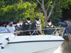 จากนั้น ได้เดินทางต่อไปยัง ด่านศุลกากรตากใบ อำเภอตากใบ จังหวัดนราธิวาส เพื่อลงเรือลาดตระเวน ตรวจพื้นที่ในการดำเนินการก่อสร้างรั้วอิเล็กทรอนิกส์ จำนวน 4 ท่าข้าม ประกอบด้วย ท่าข้ามบันได, ท่าข้ามศรีพงัน, ท่าข้ามปะลุกา และท่าข้ามกัวลอต๊ะ โดยโครงการก่อสร้างรั้วชายแดน ไทย – มาเลเชีย เริ่มต้นเมื่อปี 2560 โดย พลตรีไพศาล หนูสังข์ รองแม่ทัพภาคที่ 4 ซึ่งในขณะนั้น ดำรงตำแหน่ง รองผู้บังคับหน่วยเฉพาะกิจนราธิวาส มีเจตนารมณ์ต้องการให้สร้างรั้วป้องกันชายแดนขึ้น จึงให้ชุดควบคุมป้องกันชายแดน เสนอโครงการขึ้นมา เพื่อป้องกันสกัดกั้นยับยั้ง การลักลอบขนย้าย อาวุธ ยาเสพติด แรงงานต่างด้าว สิ่งผิด กฎหมายต่างๆ และการคัดกรองบุคคล ตลอดจนการป้องกัน การแพร่ระบาดของโรคติดเชื้อโควิด -19 หรือ โรคติดต่อ ที่อาจเกิดขึ้นในอนาคต เพื่อให้พื้นที่ชายแดน มีความมั่นคงปลอดภัยความต้องการงบประมาณที่เสนอขอ ประกอบด้วย การก่อสร้างผนังเขื่อนป้องกันตลิ่ง ระยะทาง 7.528 กิโลเมตร, การสร้างรั้วตาข่าย ระยะทาง 15 กิโลเมตร, การสร้างฐานปฏิบัติการย่อย จำนวน 3 ฐาน และ 4 รั้วความมั่นคงอิเล็กทรอนิกส์ ระยะทาง 6 กิโลเมตร