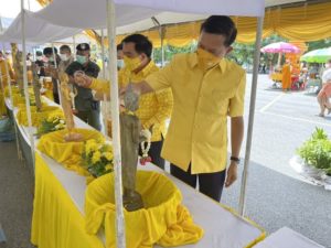 โดยมี ว่าที่ร้อยตรี ตระกูล โทธรรม นายนิติ วิวัฒต์วานิช รองผู้ว่าราชการจังหวัดปัตตานี นางประภา บุญหลวง นายกเหล่ากาชาดจังหวัดปัตตานี นางปัทมา วิวัฒน์วานิช รองนายกเหล่ากาชาดจังหวัดปัตตานี นายอับดุลการีม ยีดำ นายอำเภอโคกโพธิ์ ปลัดอำเภอ หัวหน้าส่วนราชการระดับอำเภอ ทหาร ตำรวจ เข้าร่วมพิธีสมโภช ภายใต้มาตรการป้องกันโควิด-19 อย่างเคร่งครัด