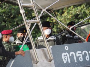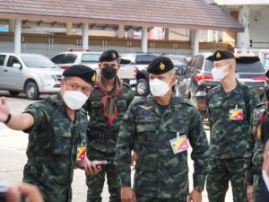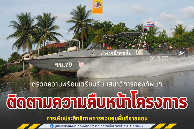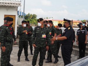 เพื่อลงเรือร่วมลาดตระเวนทางน้ำ กับตำรวจน้ำตากใบ ตรวจพื้นที่ในการดำเนินการก่อสร้างรั้วอิเล็กทรอนิกส์ ตามแนวชายแดน เป็นระยะทาง 6 กิโลเมตร พร้อมทั้งตรวจดูพื้นที่การก่อสร้างฐานปฏิบัติการถาวร อีกทั้งยังกำชับให้เพิ่มมาตรการ เข้มงวดในการดูแลรักษาความปลอดภัย ตามลำน้ำตลอดแนวชายแดนไทย-มาเลเซีย ตรวจสอบช่องทางข้ามธรรมชาติ ที่กั้นพรมแดนระหว่างประเทศไทย ด้านจังหวัดนราธิวาส กับรัฐกลันตันของประเทศมาเลเซีย อีกทั้งสั่งการให้หน่วยทหารในพื้นที่เพิ่มมาตรการคุมเข้มตลอดแนวชายแดนในพื้นที่รับผิดชอบ อำเภอตากใบ อำเภอสุไหงโก-ลก จังหวัดนราธิวาส การ์ดห้ามตก ต้องตื่นตัวอยู่เสมอ ตลอดจนให้หน่วยบูรณาการการปฎิบัติงานร่วมกันกับทุกภาคส่วนบังคับใช้กฎหมายตามแนวชายแดนอย่างเข้มงวด เพื่อป้องกันโรคติดเชื้อโควิด-19 และเฝ้าระวังภัยแทรกซ้อนต่อความมั่นคงชายแดนในทุกมิติ รวมถึงการเสริมกำลังตามแนวชายแดน โดยเฉพาะช่องทางที่มีชุมชนหรือหมู่บ้านอาศัยอยู่ใกล้แนวชายแดน การจัดตั้งจุดตรวจ/จุดสกัด และการจัดตั้งแหล่งข่าว เพื่อเพิ่มประสิทธิภาพในการปฎิบัติงานต่อไป