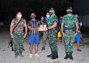 เมื่อวันที่ 29 ตุลาคม 2564 พันโท เกรียงไกร ดำรัสการ ผู้บังคับหน่วยเฉพาะกิจสงขลา 40 ลงพื้นที่พบปะ เยี่ยมให้กำลังใจเจ้าหน้าที่ประจำชุดคุ้มครองตำบลทุ่งพอ และชุดคุ้มครองตำบลคูหา อำเภอสะบ้าย้อย จังหวัดสงขลา โดยได้พูดคุยสอบถามถึงสถานการณ์ในพื้นที่ ก่อนตรวจสภาพความพร้อมในการปฏิบัติงานของกำลังพล และมอบเครื่องบริโภค เพื่อเป็นขวัญและกำลังใจให้กับกำลังพลในการปฏิบัติงานต่อไป