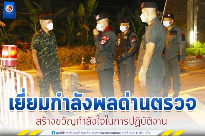 เมื่อวันที่ 1 พฤศจิกายน 2564 เวลา 19.00 น. พลตรีอุทิศ อนันตนานนท์ รองผู้อำนวยการรักษาความมั่นคงภายในภาค 4 ส่วนหน้า พร้อมคณะลงพื้นที่ตรวจเยี่ยมให้กำลังใจเจ้าหน้าที่ประจำจุดตรวจด่านตรวจในพื้นที่จังหวัดปัตตานี และจังหวัดยะลา ประกอบด้วยด่านตรวจปราการ 15, ด่านโรงไฟฟ้าตะลุโบะ อำเภอเมือง, จุดตรวจวงเวียนมะพร้าวต้นเดียว อำเภอหนองจิก จังหวัดปัตตานี และด่านตรวจคลองทรายใน อำเภอเมือง จังหวัดยะลา โดยได้พูดคุยสอบถามถึงสถานการณ์และการปฏิบัติงานในพื้นที่ พร้อมมอบเครื่องบริโภค เพื่อเป็นขวัญและกำลังใจให้กับกำลังพลในการปฏิบัติหน้าที่