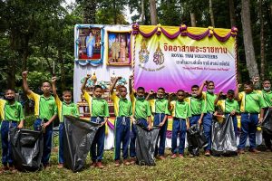 จากนั้น พลตรี สมดุลย์ เอี่ยมเอก ได้ปล่อยแถวจิตอาสา “วันแม่แห่งชาติ 12 สิงหาคม 2563 รักเอยรักลูก” และร่วมกันทำความสะอาด เก็บขยะ ปรับปรุงภูมิทัศน์ภายในบริเวณพื้นที่ของน้ำตกฉัตรวาริน
