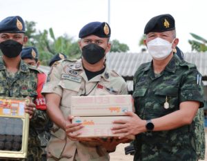 ในการนี้ พลตรี ปราโมทย์ พรหมอินทร์ รองผู้อำนวยการรักษาความมั่นคงภายในภาค 4 ส่วนหน้า ได้มอบสิ่งของบริโภคเป็นขวัญกำลังใจให้แก่เจ้าหน้าที่ชุดคุ้มครองตำบลทั้ง 2 แห่ง พร้อมมอบโอวาท และนโยบายแนวทางในการปฏิบัติงานว่า พลโท เกรียงไกร ศรีรักษ์ แม่ทัพภาคที่ 4 /ผู้อำนวยการรักษาความมั่นคงภายในภาค 4 ได้ฝากความห่วงใยมาถึงเจ้าหน้าที่ทุกนาย ในวันนี้มาเยี่ยมให้กำลังใจเจ้าหน้าชุดคุ้มครองตำบล ซึ่งตลอดเวลาที่ผ่านมาทราบว่า ทุกคนมีความมุ่งมั่นตั้งใจในการปฎิบัติหน้าที่ สามารถรักษาพื้นที่และดูแลพี่น้องประชาชนได้เป็นอย่างดี เจ้าหน้าที่ชุดคุ้มครองตำบลเป็นกำลังสำคัญทางยุทธศาสตร์ ซึ่งรัฐบาลได้จัดตั้งขึ้นมาเพื่อที่จะทดแทนกำลังทหารที่จะต้องถอนกำลังต่อไปในอนาคต สำหรับการปฏิบัติงานนั้น ขอให้ทุกคนอย่าประมาท ให้ใช้ความระมัดระวังและมีความพร้อมในการใช้อาวุธประจำกายอยู่ตลอดเวลา เพราะอาวุธประจำกายถือเป็นสิ่งที่มีความสำคัญยิ่งของพวกเรา ทุกคนต้องหมั่นตรวจสอบปรนนิบัติบำรุงให้สามารถใช้การได้ดีอยู่เสมอ และขอให้ทุกคนระมัดระวังป้องกันตัวเองให้ปลอดภัยจากการแพร่ระบาดของโรคโควิด-19 ต้องเข้ารับการฉีดวัคซีนให้ครบ และปฏิบัติตามมาตรการป้องกันโควิด-19 อย่างเคร่งครัด
