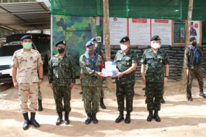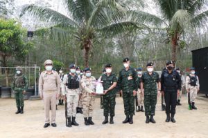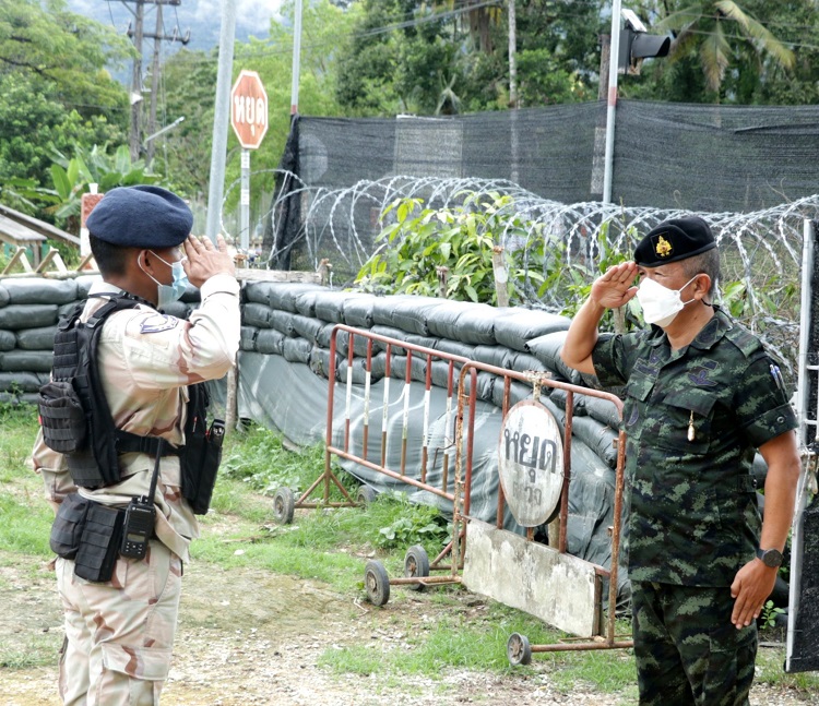 นอกจากนี้ รองผู้อำนวยการรักษาความมั่นคงภายในภาค 4 ส่วนหน้า เดินทางลงพื้นที่ตรวจเยี่ยมฐานปฏิบัติการชุดคุ้มครองตำบลปาลุกาสาเมาะ อำเภอบาเจาะ จังหวัดนราธิวาส และฐานปฏิบัติการชุดคุ้มครองตำบลสะท้อน อำเภอนาทวี จังหวัดสงขลา เพื่อตรวจเยี่ยมฐานปฏิบัติการ รวมถึงมอบนโยบาย แนวทางการปฏิบัติงานแก่เจ้าหน้าที่ชุดคุ้มครองตำบล ตลอดจนมอบสิ่งของบริโภคเป็นขวัญกำลังใจให้แก่เจ้าหน้าที่ชุดคุ้มครองตำบลทั้ง 3 แห่ง พร้อมมอบโอวาท และนโยบายแนวทางในการปฏิบัติงานของ พลโท เกรียงไกร ศรีรักษ์ แม่ทัพภาคที่ 4 / ผู้อำนวยการรักษาความมั่นคงภายในภาค 4 ที่ได้ฝากความห่วงใยมาถึงเจ้าหน้าที่ทุกนาย และให้กำลังใจแก่เจ้าหน้าที่ให้มีความอดทนปฏิบัติหน้าที่เพื่อดูแลรักษาความปลอดภัยแก่พี่น้องประชาชนในพื้นที่อย่างเต็มความสามารถ ขอให้ทุกคนไม่ประมาท ให้ใช้ความระมัดระวังและมีความพร้อมในการใช้อาวุธประจำกายอยู่ตลอดเวลา เพราะอาวุธประจำกายที่ทุกคนต้องหมั่นตรวจสอบปรนนิบัติบำรุงให้สามารถใช้การได้ดีอยู่เสมอ ที่สำคัญต้องมีการติดตามข้อมูลด้านการข่าวต่อเหตุที่อาจจะเกิดขึ้นได้ตลอดเวลาอย่างต่อเนื่อง เน้นย้ำให้มีการซักซ้อมแผนฉุกเฉินกรณีเกิดเหตุต่างๆ อย่างเข้มงวด และมีความรู้ความเข้าใจในแผนการปฏิบัติงานเป็นอย่างดีเพื่อที่จะให้การปฎิบัติงานลุล่วงอย่างมีประสิทธิภาพ ตลอดจนขอให้ทุกคนระมัดระวังป้องกันตัวเองให้ปลอดภัยจากการแพร่ระบาดของโรคโควิด-19 ต้องเข้ารับการฉีดวัคซีนให้ครบ และปฏิบัติตามมาตรการป้องกันโควิด-19 อย่างเคร่งครัด