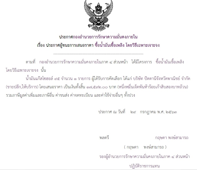 จัดซื้อ จัดจ้างประกาศผู้ชนะการเสนอราคา ประกาศผู้ชนะการเสนอราคา ซื้อน้ำมันเชื้อเพลิง โดยวิธีเฉพาะเจาะจง (17,592.00)(1) August 10, 2020 1122 Share Facebook Twitter Google+ Telegram LINE สบป.กอ.รมน.ภาค 4 สน.