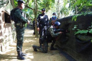 พันเอก ภาคิน เกื้อกูล ผู้บังคับหน่วยเฉพาะกิจกรมทหารพรานที่ 48 พร้อมคณะ ลงพื้นที่ตรวจเยี่ยมกำลังพลชุดคุ้มครองตำบล ในพื้นที่ 3 อำเภอ ประกอยด้วย อำเภอเจาะไอร้อง, อำเภอสุไหงปาดี และอำเภอแว้ง จังหวัดนราธิวาส เพื่อพบปะ เยี่ยมเยียนให้กำลังใจแก่ชุดคุ้มครองตำบล ซึ่งชุดคุ้มครองตำบลส่วนใหญ่ล้วนเป็นอาสาสมัครประจำพื้นที่จึงมีความสำคัญอย่างยิ่งในการดูแลชุมชนของตนเองให้มีความปลอดภัย และเข้มแข็ง โดยการลงพื้นที่ในครั้งนี้ได้เน้นย้ำในการปฏิบัติงานให้ปฏิบัติงานด้วยความระมัดระวัง ตั้งอยู่บนความไม่ประมาท และให้มีความพร้อมอยู่เสมอในการปฏิบัติงาน ไม่ว่าจะเป็นเรื่องของเวรยาม การดูแลอาวุธยุทโธปกรณ์ให้พร้อมใช้งานอยู่เสมอ รวมไปถึงการฝึกทบทวนและการซักซ้อมแผนเผชิญเหตุในการระวังป้องกันตนเองและฐานปฏิบัติการ เพื่อที่จะสามารถนำไปใช้ในการปฏิบัติได้อย่างทันท่วงทีเมื่อเกิดเหตุการณ์จริง และขอให้กำลังพลทุกคนตั้งใจปฏิบัติงานอย่างเต็มความสามารถ ขอขอบคุณกำลังพลที่ตั้งใจปฏิบัติงานอย่างดีเสมอมา ที่เสียสละทั้งเวลา และความสุขส่วนตน มาร่วมกันเป็นส่วนหนึ่งที่ทำให้พื้นที่ปลอดเหตุ และประชาชนปลอดภัย