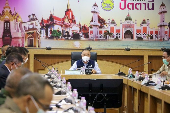 เมื่อวันที่ (11 พฤศจิกายน 2564) เวลา 13.00 น. ที่ ห้องประชุมศาลากลาง อำเภอเมือง จังหวัดปัตตานี พลเอก ณัฐพล นาคพาณิชย์ ที่ปรึกษานายกรัฐมนตรี และ ผู้อำนวยการศูนย์บูรณาการแก้ไขสถานการณ์โควิด-19 (ผอ.ศบค.ส่วนหน้า) ลงพื้นที่จังหวัดปัตตานี พบปะนักวิชาการ สาธารณสุข ผู้นำศาสนา ผู้นำท้องถิ่น เพื่อติดตามและเร่งรัดปฏิบัติงานเพื่อแก้ไขปัญหาการแพร่ระบาดของโรคติดเชื้อโควิด-19 ในพื้นที่จังหวัดชายแดนภาคใต้ พร้อมรับทราบปัญหา ข้อขัดข้อง ข้อเสนอแนะในการปฏิบัติหน้าที่ ก่อนจะร่วมประชุมติดตามผลการดำเนินการตามมาตรการการป้องกันการแพร่ระบาดของเชื้อโควิด-19 โดยมี พลโท เกรียงไกร ศรีรักษ์ แม่ทัพภาคที่ 4 / ผู้อำนวยการรักษาความมั่นคงภายในภาค 4 ,พลเรือตรี สมเกียรติ ผลประยูร เลขาธิการศูนย์อำนวยการบริหารจังหวัดชายแดนภาคใต้, รองศาสตราจารย์ อิ่มจิต เลิศพงษ์สมบัติ รองอธิการบดีวิทยาเขตปัตตานี, ผู้ว่าราชการจังหวัด หน่วยงานสาธารณสุข สมาคมกำนัน ผู้ใหญ่บ้าน และส่วนราชการที่เกี่ยวข้องในพื้นที่จังหวัดชายแดนภาคใต้