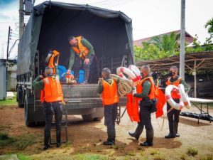 เมื่อวันที่ 12 พฤศจิกายน 2564 ที่ กองบังคับการหน่วยเฉพาะกิจกรมทหารพรานที่ 45 ตำบลตันหยงมัส อำเภอระแงะ จังหวัดนราธิวาส พันเอกทวีรัตน์ เบญจาทิกุล ผู้บังคับหน่วยเฉพาะกิจกรมทหารพรานที่ 45 มอบหมายให้ จิตอาสาหมวดทหารพรานหญิงหน่วยเฉพาะกิจกรมทหารพรานที่ 45 ดำเนินการเตรียมแพ็คสิ่งของบริโภคอาหารแห้ง,น้ำดื่ม เพื่อจัดทำถุงยังชีพ แจกจ่ายให้ประชาชน และตรวจความพร้อมกำลังพลฯ ยุทโธปกรณ์บรรเทาสาธารณภัย ประจำศูนย์บรรเทาสาธารณภัยฯ เพื่อใช้ในการบรรเทาสาธารณภัย เตรียมพร้อมช่วยเหลือประชาชนในสถานการณ์อุทกภัย อย่างเต็มศักยภาพ “กองทัพบกห่วงใย หากมีภัยพิบัติ เราพร้อมจะอยู่เคียงข้างประชาชนเสมอ”ตามนโยบายของกองทัพภาคที่ 4 และกองทัพบก