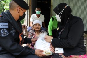 ที่ บ้านโคก และบ้านยานิง ตำบลจวบ อำเภอเจาะไอร้อง จังหวัดนราธิวาส หน่วยเฉพาะกิจกรมทหารพรานที่ 48 โดยกองร้อยทหารพรานที่ 4803 พร้อมด้วย กำลังพลชุดปฏิบัติการกิจการพลเรือน ลงพื้นที่ร่วมกับผู้นำท้องถิ่น ผู้นำท้องที่ โฆษกชาวบ้าน อาสาสมัครสาธารณสุขประจำหมู่บ้าน และกลุ่มมวลชนในพื้นที่ ได้นำถุงยังชีพเพื่อนำไปแจกจ่ายให้กับประชาชนกลุ่มเปราะบางในพื้นที่รับผิดชอบ ซึ่งกลุ่มเปราะบางดังกล่าวนั้นประกอบด้วย ผู้สูงอายุที่ยากไร้ และผู้ป่วยติดเตียงในพื้นที่ เป็นกลุ่มที่ต้องได้รับความช่วยเหลืออย่างเร่งด่วนที่สุด เพื่อสร้างขวัญกำลังใจ และช่วยเหลือบรรเทาความเดือดร้อนในเบื้องต้น พร้อมทั้งพบปะ ให้กำลังใจ แนะนำวิธีการดูแลตัวเองในช่วงวิกฤตของการแพร่ระบาดของเชื้อไวรัสโควิด-19 และให้ปฏิบัติตามหลัก D -M- H -T- T ของกรมควบคุมโรคอย่างเคร่งครัด อีกทั้งยังได้แนะนำวิธีการดูแลสุขภาพในช่วงหน้าฝนให้กับผู้ป่วยติดเตียง และผู้สูงอายุในพื้นที่
