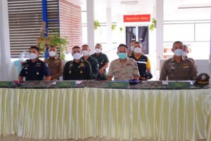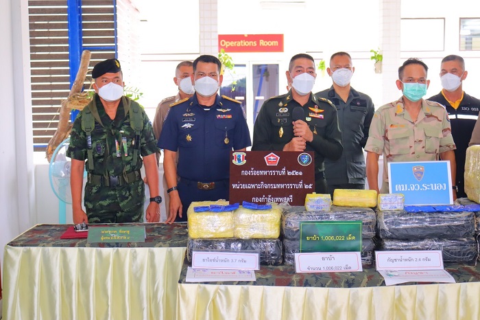 ด้าน พันเอกภูมิพัฒน์ บุญเรืองขาว ผู้บังคับหน่วยเฉพาะกิจกรมทหารราบที่ 25 กล่าวว่า “ข้อมูลด้านการข่าวแจ้งว่าจะมีการขนย้ายยาเสพติดผ่านมาทางพื้นที่จังหวัดระนอง เพื่อส่งต่อไปยังพื้นที่ตอนใต้ จึงได้เพิ่มความเข้มงวดจุดตรวจ/จุดสกัดในการตรวจบุคคล และยานพาหนะที่ผ่านเข้า – ออก จนเมื่อวันที่ 13 พฤศจิกายน 2564 เวลา 22.00 น. ได้ดำเนินการตรวจรถเก๋งมาสด้า สีขาว ทะเบียน ขข 8153 สุราษฎร์ธานี (มุ่งหน้าจังหวัดระนอง) คนขับชื่อ นาย นครินทร์ ขอค้า อายุ 45 ปี ซึ่งในขณะนั้นได้ขับรถหลบหนีจากจุดตรวจ มุ่งหน้า จังหวัดระนอง จึงได้เเจ้งให้เจ้าหน้าที่ประจำจุดตรวจ/จุดสกัด สกัดรถคันดังกล่าว และจัดกำลังไล่ติดตามรวมทั้งแจ้งให้ผู้นำท้องถิ่นในพื้นที่ทราบ และในเวลา 22.40 น. ได้รับแจ้งจากผู้ช่วยผู้ใหญ่บ้าน และชุดรักษาความปลอดภัยหมู่บ้านว่าพบรถเป้าหมาย บริเวณซอยโรงเรียนบ้านหินวัว อำเภอกระบุรี จังหวัดระนอง จนสามารถควบคุมตัว นาย นครินทร์ฯ พร้อมรถคันดังกล่าวไว้ได้ เเละดำเนินการตรวจสอบบริเวณดังกล่าว พบยาบ้า จำนวน 5 กระสอบ กระสอบละ 200,000 เม็ด รวมยาบ้าประมาณ 1 ล้านเม็ด วางซุกซ่อนไว้ในป่ากล้วยซึ่งห่างจากตัวรถประมาณ 5 เมตร โดย นาย นครินทร์ฯ ยอมรับ สารภาพว่า ตนได้นำลงจากรถ เเล้วไปซุกซ่อนไว้ เจ้าหน้าที่จึงได้ทำการตรวจค้นภายในรถพบยาบ้าอีกจำนวนหนึ่ง ซุกซ่นไว้ในรถและกระเป๋าสะพาย นอกจากนี้ยังได้พบยาไอซ์ชนิดเกล็ดใส จำนวน 2 ถุง น้ำหนัก 3.7 กรัม และกัญชา 2.4 กรัม รวมยาบ้าทั้งหมดประมาณ 1,006,022 เม็ด จากนั้นจึงได้คุมตัวผู้ต้องหา พร้อมของกลาง มาดำเนินการสอบสวนและขยายผลต่อไป ซึ่งจากผลการจับกุมดังกล่าว ถือเป็นการขับเคลื่อนนโยบายการแก้ไขปัญหายาเสพติดอย่างจริงจัง และผลสัมฤทธิ์จากการบูรณาการกำลังทุกภาคส่วนในการป้องกัน และปราบปรามยาเสพติดมาอย่างต่อเนื่อง อย่างไรก็ตามขอความร่วมมือพี่น้องประชาชน หากพบเบาะแสก็สามารถแจ้งเข้ามายังเจ้าหน้าที่ที่เกี่ยวข้องได้ตลอด เพื่อให้ยาเสพติดหมดไปจากประเทศ คลายทุกข์ให้กับพี่น้องประชาชนเกิดความสงบสุขในพื้นที่ต่อไป”