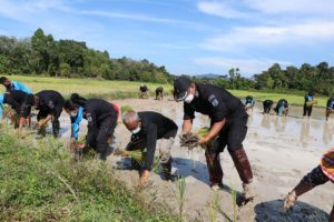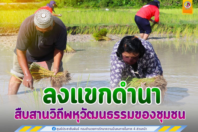เมื่อวันที่ 21 พฤศจิกายน 2564 เวลา 09.00 น. ที่ บ้านบลูกาฮีเล หมู่ที่ 6 ตำบลบาตง อำเภอรือเสาะ จังหวัดนราธิวาส พันเอกทรงเดช สุกนุ้ย ผู้บังคับหน่วยเฉพาะกิจกรมทหารพรานที่ 46 ร่วมกับฝ่ายอำนวยการที่ 5 หน่วยเฉพาะกิจกรมทหารพรานที่ 46, ชุดปฏิบัติการกิจการพลเรือนหญิง, ผู้บังคับกองร้อยทหารพรานที่ 4613 กำนันตำบลบาตง, มวลชนเสื้อเขียว, อาสาสมัครสาธารณสุขประจำหมู่บ้าน (อสม.) และกลุ่มสตรีไทยพุทธ และไทยมุสลิม ร่วมกิจกรรมพหุวัฒนธรรม โดยการลงแขกปลูกข้าวดำนาร่วมกัน เพื่อสร้างความสัมพันธ์อันดีระหว่างไทยพุทธกับไทยมุสลิม และหน่วยทหารในพื้นที่ อีกทั้งเป็นการส่งเสริมให้ประชาชนในพื้นที่ได้หันมาทำนาปลูกข้าว เพื่อฟื้นฟูและลดปัญหานาร้างในพื้นที่ ซึ่งประชาชนรู้สึกดีใจ และขอบคุณเจ้าหน้าที่ ที่ได้ร่วมกิจกรรมดีๆ ในครั้งนี้ สร้างความอบอุ่นให้ประชาชนในพื้นที่เป็นอย่างมาก