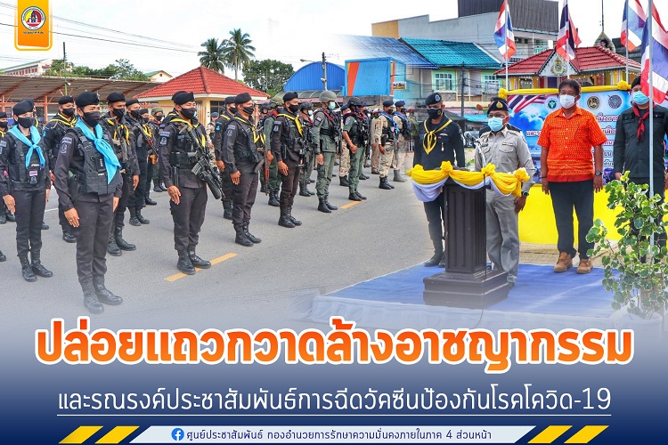 เมื่อวันที่ 21 พ.ย.64 (ที่ผ่านมา) เวลา 17.00 น. ที่ วงเวียนลองกอง ตำบลตันหยงมัส อำเภอระแงะ จังหวัดนราธิวาส พันเอกทวีรัตน์ เบญจาทิกุล ผู้บังคับหน่วยเฉพาะกิจกรมทหารพรานที่ 45 พร้อมด้วยกำลังพลของหน่วย ร่วม 3 ฝ่ายอำเภอระแงะ จัดกิจกรรมปล่อยแถวกวาดล้างอาชญากรรม และรณรงค์ประชาสัมพันธ์การรณรงค์ฉีดวัคซีนป้องกันโรคโควิด-19 ก่อนการเลือกตั้งองค์การบริหารส่วนตำบล (อบต.) ในพื้นที่ โดยมี ว่าที่ ร้อยตรี จิรัสย์ ศิริวัลลภ นายอำเภอระแงะ เป็นประธาน