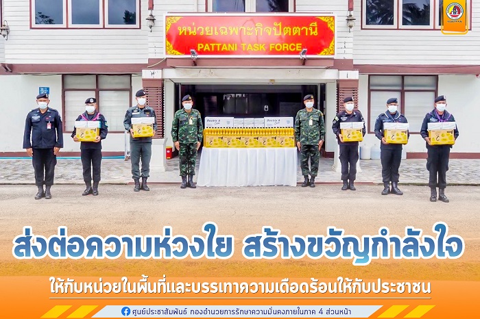 ทั้งนี้ รองผู้บังคับหน่วยเฉพาะกิจปัตตานี ในฐานะผู้แทนหน่วยเฉพาะกิจปัตตานี ขอขอบคุณ บริษัท ดั๊บเบิ้ล เอ จำกัด (มหาชน) และ บริษัท ฟู๊ดสตาร์ จำกัด ที่ได้เห็นถึงความสำคัญและร่วมเป็นส่วนหนึ่งในการส่งกำลังใจให้กับหน่วยทหาร และเจ้าหน้าที่ทุกภาคส่วนซึ่งปฏิบัติหน้าที่ด้วยความทุ่มเทเสียสละ ตลอดจนส่งความห่วงใยมายังพี่น้องประชาชนทุกคนที่ได้รับผลกระทบจากการแพร่ระบาดของโรคโควิด-19 ในการนี้ รองผู้บังคับหน่วยเฉพาะกิจปัตตานี ได้ฝากความห่วงใยถึงหน่วยในพื้นที่ในการลงปฏิบัติหน้าที่ รวมถึงการป้องกันตนเองให้ปลอดภัยจากสถานการณ์การแพร่ระบาดของโรคโควิด-19 ในพื้นที่ โดยให้ปฏิบัติหน้าที่ภายใต้มาตรการป้องกันการแพร่ระบาดของโรคโควิด-19 โดยยึดหลัก D-M-H-T-T ของกระทรวงสาธารณสุข อย่างเคร่งครัด