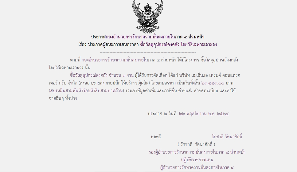 จัดซื้อ จัดจ้างประกาศผู้ชนะการเสนอราคา ประกาศผู้ชนะการเสนอราคา ซื้อวัสดุอุปกรณ์คงคลัง โดยวิธีเฉพาะเจาะจง November 29, 2021 476 Share Facebook Twitter Google+ Telegram LINE