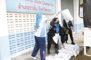 หน่วยเฉพาะกิจกรมทหารพรานที่ 41 จัดกำลังพล ชุดปฏิบัติการเสริมสร้างความเข้าใจ นำข้าวสารที่รับมอบจากหน่วยเฉพาะกิจยะลา จำนวน 400 ถุง เพื่อส่งมอบให้กับบุคลากรทางการแพทย์ และผู้ป่วยที่ถูกกักกันเข้าพักสังเกตอาการ covid-19 ใน State Quarantine ของอำเภอรามัน ทั้ง 2 แห่ง ประกอบด้วย State Quarantine โรงเรียนดารุลฮูดาห์วิทยา หมู่ที่ 1 และ State Quarantine โรงเรียนราชประชานุเคาะห์ 41 หมู่ที่ 2 ตำบลวังพญา อำเภอรามัน จังหวัดยะลา