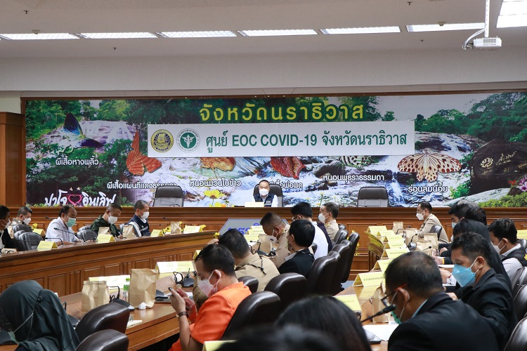 วันนี้ (2 ธันวาคม 2564) ที่ศาลากลางจังหวัดนราธิวาส พลเอก ณัฐพล นาคพาณิชย์ ที่ปรึกษานายกรัฐมนตรี และผู้อำนวยการศูนย์บูรณาการแก้ไขสถานการณ์โควิด-19 (ศบค.ส่วนหน้า) เป็นประธานประชุมติดตามผลการดำเนินการตามมาตรการป้องกันการแพร่ระบาดของโรคโควิด-19 ในพื้นที่จังหวัดชายแดนภาคใต้ เพื่อกำกับ ดูแล ประสานงาน ขับเคลื่อน เร่งรัดและติดตาม การปฏิบัติงานเพื่อแก้ไขปัญหาการแพร่ระบาดของโรคโควิด-19 ในพื้นที่จังหวัดชายแดนภาคใต้ ด้วยการบูรณาการจากทุกภาคส่วน ทั้งภาครัฐ ภาคเอกชน และภาคประชาชนเข้ามามีส่วนร่วมในการขับเคลื่อนการแก้ไขปัญหาการระบาดของโรคโควิด-19 เพื่อเตรียมเปิดเมือง เป็นของขวัญให้กับพี่น้องประชาชน ต้อนรับปีใหม่ที่จะถึงนี้ โดย นายไพโรจน์ จริตงาม รองผู้ว่าราชการจังหวัดนราธิวาส, นายแพทย์เฉลิมพล โอสถพรมมา ผู้อำนวยการสำนักงานป้องกันควบคุมโรคที่ 12 จังหวัดสงขลา, พลตรี ปราโมทย์ พรหมอินทร์ รองผู้อำนวยการรักษาความมั่นคงภายในภาค 4 ส่วนหน้า/โฆษก ศบค.ส่วนหน้า และส่วนราชการที่เกี่ยวข้องเข้าร่วมประชุมครั้งนี้