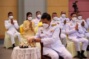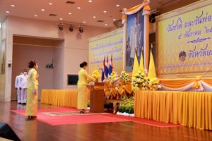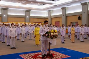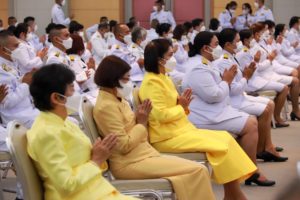 จากนั้น เวลา 09.00 น. นายภิรมย์ นิลทยา ผู้ว่าราชการจังหวัดยะลา ประธานในพิธี นำส่วนราชการและพสกนิกรทุกหมู่เหล่า ร่วมพิธีวางพานพุ่มและพิธีถวายบังคมเบื้องหน้าพระบรมฉายาลักษณ์ฯ เพื่อแสดงความจงรักภักดี และน้อมรำลึกในพระมหากรุณาธิคุณของพระบาทสมเด็จพระบรมชนกาธิเบศร มหาภูมิพลอดุลยเดชบรมนาถบพิตร ที่ทรงปฏิบัติพระราชกรณียกิจเพื่อประโยชน์สุขของปวงชนชาวไทย โดยตลอดทั้งพิธี อยู่ภายใต้มาตรการ การป้องกันโควิด-19 อย่างเคร่งครัด