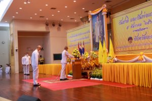 โอกาสนี้ ผู้ว่าราชการจังหวัดยะลาเป็นประธานในพิธี ได้จุดธูปเทียนบูชาพระรัตนตรัย จุดธูปเทียนเครื่องทองน้อยเบื้องหน้าพระบรมฉายาลักษณ์ พระบาทสมเด็จพระบรมชนกาธิเบศร มหาภูมิพลอดุลยเดชมหาราช บรมนาถบพิตร พร้อมกับประกอบพิธีทางศาสนา โดยมีพระราชปัญญามุนี เจ้าคณะจังหวัดยะลา เป็นประธานฝ่ายสงฆ์ นำพระสงฆ์ จำนวน 10 รูป ประกอบพิธีเจริญพระพุทธมนต์ ประธานในพิธีพร้อมด้วยหัวหน้าส่วนราชการ ถวายเครื่องไทยธรรมและผ้าไตรแก่พระสงฆ์ พระสงฆ์อนุโมทนา ถวายอดิเรก จากนั้นประธานในพิธีนำพสกนิกรทุกหมู่เหล่า ร่วมทำบุญตักบาตรแก่พระสงฆ์ จำนวน 89 รูป ถวายเป็นพระราชกุศลแด่พระบาทสมเด็จพระบรมชนกาธิเบศร มหาภูมิพลอดุลยเดชมหาราช บรมนาถบพิตร