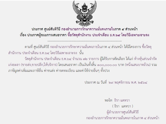 จัดซื้อ จัดจ้างประกาศผู้ชนะการเสนอราคา ประกาศผู้ชนะการเสนอราคา ซื้อวัสดุสำนักงาน ประจำเดือน ธ.ค.๖๔ โดยวิธีเฉพาะเจาะจง December 6, 2021 653 Share Facebook Twitter Google+ Telegram LINE