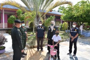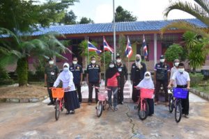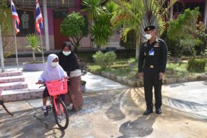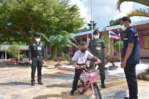 พันโท วัตสันต์ โพธิ์สุภาพพร ผู้บังคับกองพันทหารราบที่ 1 กรมทหารราบที่ 151 พร้อมด้วย คณะครู และผู้นำท้องถิ่น ร่วมกันมอบจักรยานให้กับน้องๆ นักเรียนที่มีผลการเรียนดีแต่มีฐานะยากจน ภายใต้ “โครงการจักรยานสานฝัน ปันสุข กองทัพบก” โดยนำจักรยานจำนวน 4 คัน มามอบให้กับนักเรียน ประกอบด้วย เด็กหญิง นูรีกสมีย์ บอซอ, เด็กหญิง ฟาตีมา มะเราะ, เด็กชาย นิอัฎฮา สาเมาะ และ เด็กชาย กาบีรอ เจ๊ะอาแซ ซึ่งเป็นเด็กนักเรียนในพื้นที่ตำบลละหาร อำเภอยี่งอ จังหวัดนราธิวาส เพื่อใช้เป็นพาหนะในการเดินทางไปโรงเรียน หรือใช้ในชีวิตประจำวัน ซึ่งการจัดกิจกรรมในครั้งนี้ ผู้เข้าร่วมกิจกรรมฯ ปฏิบัติภายใต้มาตรการป้องกันเชื้อไวรัส COVID – 19 อย่างเคร่งครัด
