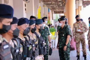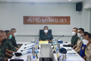 เมื่อวันที่ 10 ธันวาคม 2564 เวลา 10.00 น. ที่ ห้องประชุม ชั้น 2 อาคารสถานีรถไฟยะลา ตำบลสะเตง อำเภอเมือง จังหวัดยะลา พลตรี ปราโมทย์ พรหมอินทร์ รองผู้อำนวยการรักษาความมั่นคงภายในภาค 4 ส่วนหน้า พร้อมคณะ ลงพื้นที่ตรวจเยี่ยมการปฏิบัติภารกิจ และติดตามผลการปฏิบัติงานสมาชิกอาสารักษาดินแดนรถไฟ ในการนี้ได้รับฟังบรรยายสรุปการดำเนินงานของสมาชิกอาสารักษาดินแดนรถไฟ มอบนโยบายเพื่อให้การปฏิบัติงานมีประสิทธิภาพยิ่งขึ้น ก่อนพบปะ และมอบหน้ากากอนามัยให้แก่พี่น้องประชาชนที่มาใช้บริการโดยสารด้วยขบวนรถไฟ โดยมี พันเอก วิชิต ปัญติภาณุวัฒน์ รองผู้บังคับหน่วยเฉพาะกิจยะลา, นายกองตรี ประยง ศิริกาศ ผู้บังคับกองร้อยหมวดปฏิบัติการพิเศษที่ 2 กองบัญชาการกองอาสารักษาดินแดน, พันเอก อนุชา โนนคู่เขตโขง รองผู้บังคับกองบัญชาการควบคุมสมาชิกอาสารักษาดินแดน จังหวัดชายแดนภาคใต้, นายกองตรี ปารเมศ เก่งสวัสดิ์ รองผู้บังคับกองบัญชาการควบคุมสมาชิกอาสารักษาดินแดน จังหวัดชายแดนภาคใต้, ปลัดอำเภอ และสมาชิกอาสารักษาดินแดนรถไฟให้การต้อนรับ