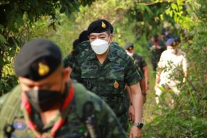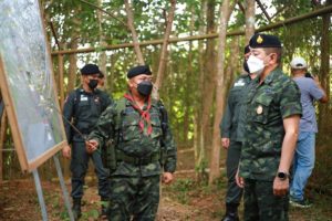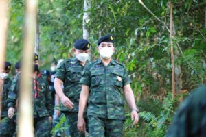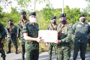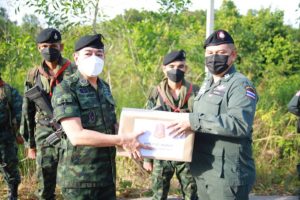 จากนั้น ได้ตรวจเยี่ยมกำลังพลที่ปฏิบัติงานชุดปฏิบัติการจรยุทธ์ บริเวณแนวชายแดน หลักเขตแดนที่ 23/35 เพื่อแก้ไขปัญหาการกระทำผิดกฎหมายตามแนวชายแดน โดยเน้นย้ำให้กำลังพลตั้งใจปฏิบัติหน้าที่ ในการสกัดกั้นแนวชายแดน ไม่ให้มีการกระทำผิดกฎหมายทุกรูปแบบ โดยเฉพาะอย่างยิ่ง การค้ามนุษย์, การลักลอบเข้าเมืองโดยผิดกฎหมาย โดยอยู่ภายใต้มาตรการป้องกันตนเองและป้องกันโรคของกระทรวงสาธารณสุข พร้อมทั้งมอบของตรวจเยี่ยมเพื่อเป็นขวัญและกำลังใจให้กับกำลังพลที่ปฏิบัติหน้าที่บริเวณแนวชายแดน สำหรับพื้นที่ชายแดนไทย – มาเลเซีย ด้าน อำเภอสะเดา จังหวัดสงขลา พบว่ายังมีการลักลอบเข้าเมืองโดยผิดกฎหมาย และมีการอาศัยช่องทางธรรมชาติเป็นเส้นทางของแรงงานต่างด้าวหลบหนีเข้าเมืองและสามารถจับกุมผู้ลักลอบผ่านแดนจากประเทศเมียนมาได้จำนวนมาก โดย รองแม่ทัพภาคที่ 4 เน้นย้ำให้ กองกำลังเทพสตรี และหน่วยงานทุกส่วนที่รับผิดชอบไปกำหนดมาตรการ และบูรณาการกำลังทุกภาคส่วนเพื่อให้เกิดประสิทธิภาพสูงสุดในการสกัดกั้นตามแนวชายแดน ต่อไป