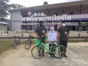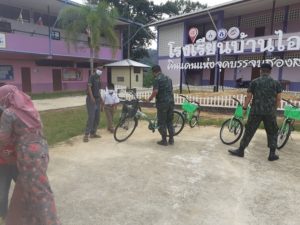 ที่ โรงเรียนบ้านไอร์โซ ตำบลช้างเผือก อำเภอจะแนะ จังหวัดนราธิวาส พันโทณัฐวุฒิ ศรัสังข์ ผู้บังคับกองพันทหารราบที่ 3 กรมทหารราบที่ 151 มอบหมายให้ ฝ่ายกิจการพลเรือน นำรถจักรยานมอบให้กับนักเรียนในโครงการ “โรงเรียนต้นแบบตามหลักปรัชญาของเศรษฐกิจพอเพียง” จำนวน 5 คัน ตามนโยบายของผู้บัญชาการทหารบกในการช่วยเหลือนักเรียนที่ขาดแคลนทุนทรัพย์ บ้านอยู่ห่างไกลโรงเรียน เพื่ออำนวยความสะดวกให้น้อง ๆเดินทางสะดวกมากขึ้นและเป็นการช่วยแบ่งเบาภาระครอบครัวอีกทางหนึ่งด้วย