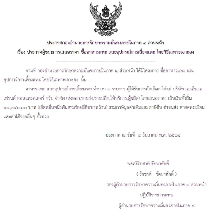 ประกาศผู้ชนะการเสนอราคา ซื้ออาหารแพะ และอุปกรณ์การเลี้ยงแพะ โดยวิธีเฉพาะเจาะจง (71,340 บาท)