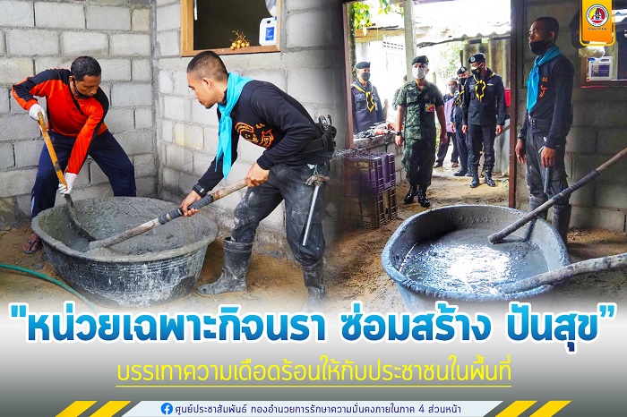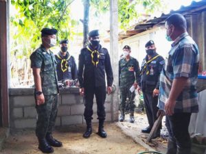เมื่อวันที่ 12 ธันวาคม 2564 เวลา 10.30 น. พันเอก ยุทธนา สายประเสริฐ รองผู้บังคับหน่วยเฉพาะกิจนราธิวาส และคณะฯ ลงพื้นที่ไปยังบ้านเลขที่ 175/3 หมู่ที่ 5 ตำบลเฉลิม อำเภอระแงะ จังหวัดนราธิวาส เพื่อตรวจเยี่ยมการดำเนินการก่อสร้างที่อยู่อาศัย ตามโครงการ “หน่วยเฉพาะกิจนรา ซ่อมสร้าง ปันสุข” ประจำปีงบประมาณ 2564 ซึ่งเป็นบ้านของ นางสาวรอกีเย๊าะ ดาโอะ ที่ได้รับการคัดเลือกเข้าโครงการ “หน่วยเฉพาะกิจนรา ซ่อมสร้าง ปันสุข” เพื่อบรรเทาความเดือดร้อน ยกระดับคุณภาพชีวิตให้มีความเป็นอยู่ที่ดีขึ้น โดยมี พันเอก ทวีรัตน์ เบญจาทิกุล ผู้บังคับหน่วยเฉพาะกิจกรมทหารพรานที่ 45 พร้อมด้วย ผู้นำหมู่บ้าน และผู้นำศาสนา ร่วมให้การต้อนรับ ทั้งนี้ รองผู้บังคับหน่วยเฉพาะกิจนราธิวาส ได้มอบสิ่งของอุปโภคบริโภคให้กับ นางสาวรอกีเย๊าะ ดาโอะ และ ชุดช่างของหน่วย เพื่อสร้างขวัญและกำลังใจในการ