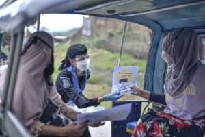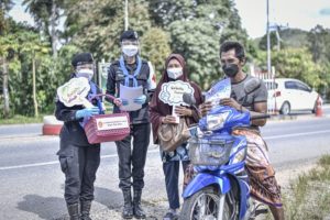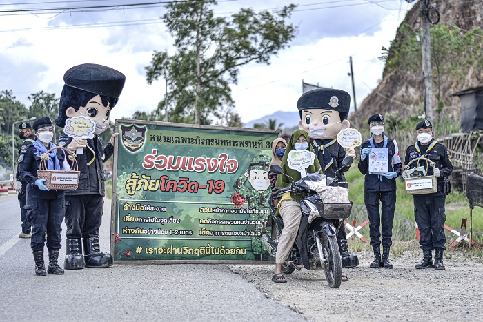 หน่วยเฉพาะกิจกรมทหารพรานที่ 30 จัดกำลังพล ชุดปฏิบัติการเสริมสร้างความเข้าใจ หมวดทหารพรานหญิงที่ 30 แจกแผ่นพับประชาสัมพันธ์ให้ความรู้ในการป้องกันตนเองจากการแพร่ระบาดของโรคติดเชื้อไวรัสโคโรนา 2019 (COVID-19) ให้กับประชาชนทั่วไปที่สัญจรผ่านไป-มา บริเวณหน้าฐานปฏิบัติการ หน่วยเฉพาะกิจกรมทหารพรานที่ 30 บ้านยีลาปัน หมู่ที่ 11 ตำบลตลิ่งชัน อำเภอบันนังสตา จังหวัดยะลา เพื่อรณรงค์สร้างการรับรู้แก่ประชาชน ในเรื่องมาตรการป้องกันการแพร่ระบาดของโรคติดเชื้อไวรัส COVID-19 และมาตรการต่างๆ ของรัฐบาลที่เกิดขึ้นตามควบคู่ไปด้วย