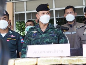 เมื่อวันที่ 12 ธันวาคม 2564 เวลา 11.30 น. ที่ สถานีตำรวจภูธรตากใบ ตำบลเจ๊ะเห อำเภอตากใบ จังหวัดนราธิวาส พลตรี เฉลิมพร ขำเขียว ผู้บัญชาการกองพลทหารราบที่ 15 / ผู้บังคับหน่วยเฉพาะกิจนราธิวาส พร้อมด้วย พลตำรวจตรี แวสาแม สาและ ผู้บังคับการตำรวจภูธรจังหวัดนราธิวาส และ พันตำรวจเอก นราวี บินแวอารง ผู้กำกับสถานีตำรวจภูธรตากใบ และนายกฤษฎา สุขสบาย ปลัดอำเภอตากใบ และเจ้าหน้าที่ที่เกี่ยวข้อง ได้ร่วมแถลงผลการจับกุมตัว นายสุภัทร คะทะวะรัตน์ อายุ 37 ปี อยู่บ้านเลขที่ 123 หมู่ที่ 2 ตำบล ภูเขาทอง อำเภอสุคิริน จังหวัดนราธิวาส และ นางสาว ช่อผกา อภัยสวัสดิ์ อายุ 24 ปี อยู่บ้านเลขที่ 64/1 หมู่ที่ 3 ตำบลน้ำรอบ อำเภอพุนพิน จ.สุราษฏร์ธานี ซึ่งทั้ง 2 คน เป็นสามีภรรยา พร้อมของกลางกัญชาแห้งอัดแท่ง ห่อด้วยกระดาษฟลอยด์สีบรอนด์ทอง พันด้วยเทปใส บรรจุอยู่ในกระสอบปุ๋ยสีขาว และห่อหุ้มด้วยถุงพลาสติกทึบแสงสีดำอีกชั้นหนึ่ง จำนวน 34 กระสอบ รวม 94 แท่ง น้ำหนัก 1,680 กิโลกรัม ซึ่งมีมูลค่ากว่า 50 ล้านบาท ขณะลักลอบขนย้ายอำพรางมากับรถยนต์เทรลเลอร์ 18 ล้อ ยี่ห้อ HINO สีแดง หมายเลขทะเบียน 87-2674 สระบุรี โดยมีท่อนไม้ยูคาลิปตัสปิดทับไว้ จากจังหวัดนครพนม ซึ่งเจ้าหน้าที่สามารถจับกุมได้ ที่บริเวณชายทะเลบ้านกูบู หมู่ที่ 6 ตำบลไพรวัน อำเภอตากใบ จังหวัดนราธิวาส เมื่อช่วงค่ำของวันที่ 8 ธันวาคม 2564 ที่ผ่านมา