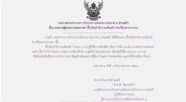 ประกาศผู้ชนะการเสนอราคา ซื้อวัสดุสำนักงานเพิ่มเติม โดยวิธีเฉพาะเจาะจง (47,400 บาท)
