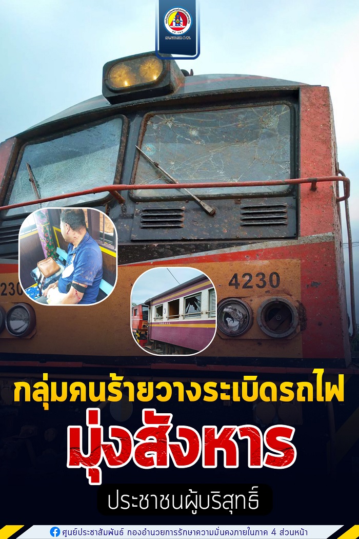 จากกรณีคนร้ายลอบวางระเบิดขบวนรถไฟสายท้องถิ่น ขบวนที่ 452 ขาขึ้น เส้นทาง สุไหงโกลก ถึง นครศรีธรรมราช เมื่อวันที่ 13 ธ.ค. 64 เวลาประมาณ 12.30 น. ทำให้มีผู้ได้รับบาดเจ็บ 3 ราย โดยคนร้ายได้วางระเบิดแบบแสวงเครื่องบนเนินดินซึ่งมีความสูงในระดับเดียวกับหน้าต่างรถไฟและจุดชนวนระเบิดด้วยการลากสายไฟเพื่อเพิ่มความแม่นยำ มุ่งสังหารต่อผู้ที่โดยสารในขบวนรถไฟขบวนดังกล่าว โดยเฉพาะพี่น้องประชาชนผู้หาเช้ากินค่ำที่ใช้ในการสัญจรไปมาเนื่องจากเป็นขบวนรถไฟสายท้องถิ่น นอกจากนี้ยังใช้ในการขนส่งระบายสินค้าทางการเกษตรสร้างรายได้ให้แก่ประชาชนในพื้นที่อีกด้วย โดยพฤติกรรมดังกล่าวของกลุ่มผู้ก่อเหตุรุนแรง ได้สร้างความเดือดร้อนให้แก่ประชาชนในการเดินทางสัญจรโดยทางรถไฟเป็นอย่างมาก