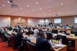 จากนั้นเวลา 13.30 น. แม่ทัพภาคที่ 4/ผู้อำนวยการรักษาความมั่นคงภายในภาค 4 เป็นประธานการประชุมหน่วยขึ้นตรงกองอำนวยการรักษาความมั่นคงภายในภาค 4 ส่วนหน้า ประจำเดือน ธันวาคม 2564 ผ่านระบบทางไกลผ่านจอภาพ (VTC) ณ ห้องประชุม 1 กองอำนวยการรักษาความมั่นคงภายในภาค 4 ส่วนหน้า ค่ายสิรินธร ตำบลเขาตูม อำเภอยะรัง จังหวัดปัตตานี ติดตามผลการปฏิบัติงานตามสั่งการ ตลอดจนเพื่อเน้นย้ำนโยบายที่สำคัญ และข้อสั่งการของผู้บังคับบัญชาให้หน่วยนำไปปฏิบัติ โดยก่อนวาระการประชุม หน่วยขึ้นตรงกองทัพภาคที่ 4 และหน่วยขึ้นตรงกองอำนวยการรักษาความมั่นคงภายในภาค 4 ส่วนหน้า แม่ทัพภาคที่ 4 ได้มอบรางวัลให้กับหน่วยที่มีผลการปฏิบัติงานดีเด่น และมอบโล่เกียรติคุณให้กับกำลังพลที่มีจิตสาธารณะทำประโยชน์เพื่อส่วนรวม ตลอดจนนำภาพลักษณ์ที่ดีมาสู่กองทัพภาคที่ 4 และกองอำนวยการรักษาความมั่นคงภายในภาค 4 ส่วนหน้า ทั้งนี้เพื่อเป็นขวัญกำลังใจแก่หน่วย รวมทั้งเป็นการเชิดชูเกียรติ และสร้างความภาคภูมิใจให้แก่กำลังพลก่อนให้โอวาท และแนวทางการทำงานต่อไป